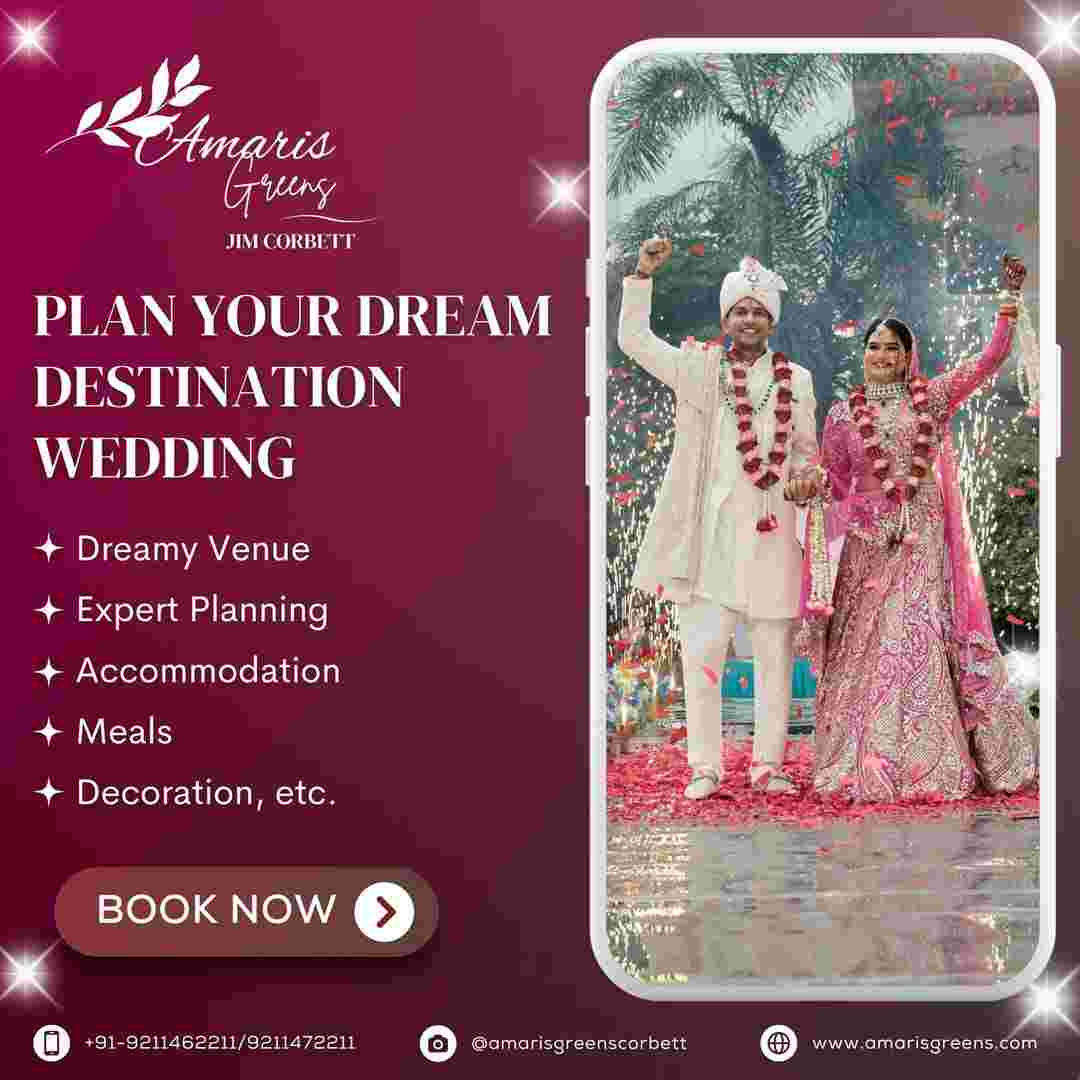 A destination wedding in Jim Corbett offers a perfect escape into nature, and Amaris Greens Resort makes it even more special. Surrounded by forest views and peaceful surroundings, this venue is ideal for couples who want a unique and refreshing wedding experience. From beautifully decorated venues to customized wedding themes, everything is designed to match your style.