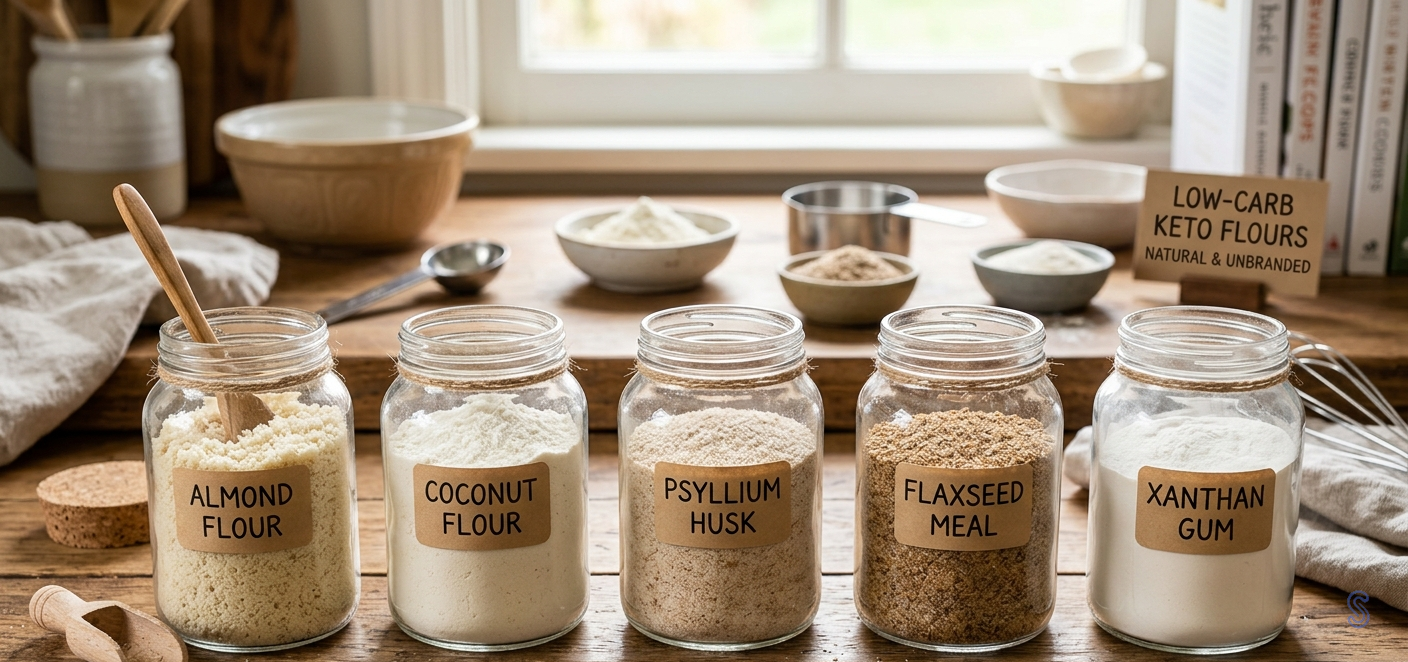 Coconut Flour: Popular for its high fiber and low digestible carbohydrate content.