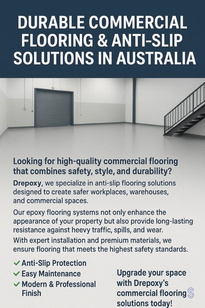 https://www.drepoxy.com.au/epoxyFlake.htmlLooking for high-quality commercial flooring that combines safety, style, and durability? At Drepoxy , we specialize in anti-slip flooring solutions designed to create safer workplaces, warehouses, and commercial spaces. Our epoxy flooring systems not only enhance the appearance of your property but also provide long-lasting resistance against heavy traffic, spills, and wear. With expert installation and premium materials, we ensure flooring that meets the highest safety standards. ✅ Anti-Slip Protection ✅ Easy Maintenance ✅ Modern & Professional Finish 👉 Upgrade your space with Drepoxy’s commercial flooring solutions today! https://www.drepoxy.com.au/epoxyFlake.html0 Commenti 0 condivisioni 37 Views 0 AnteprimaEffettua l'accesso per mettere mi piace, condividere e commentare!